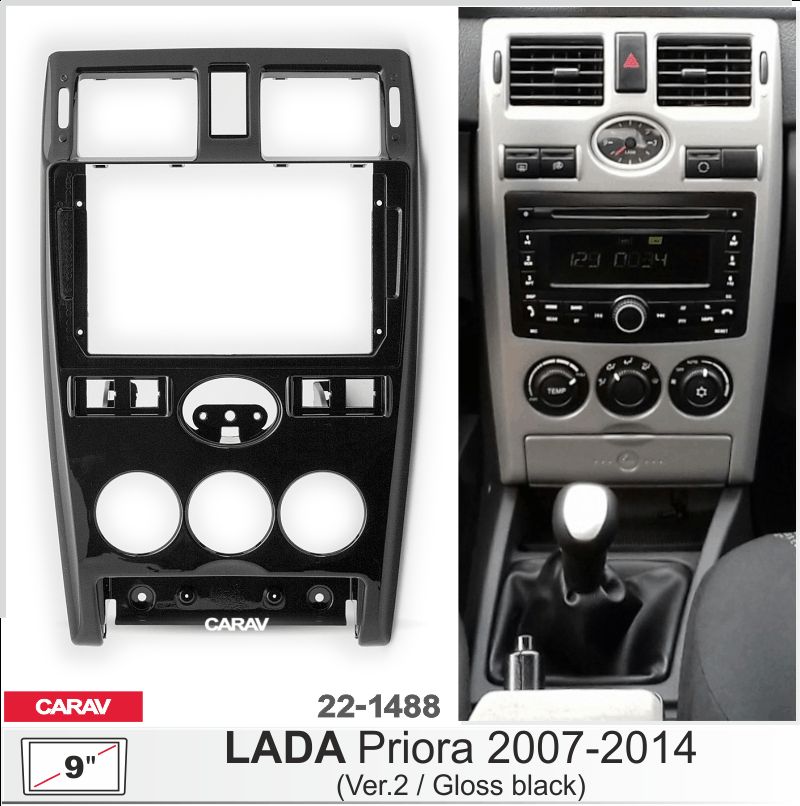 —CARAV 22-1488 (9 дюйм. монтажная рамка для а/м LADA Priora 2007-2014 (Ver.2 / черный лак)